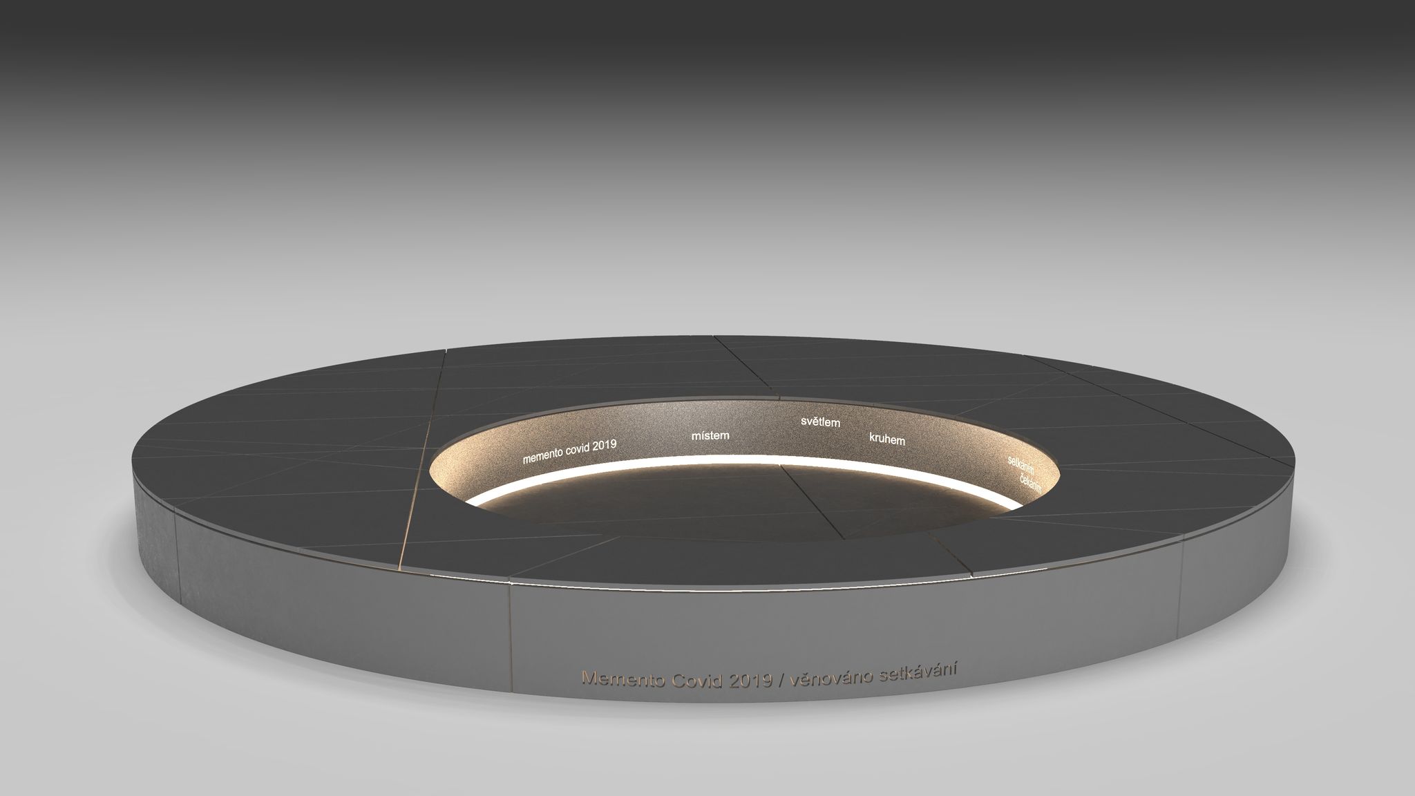 „Památník se stane i světelným objektem. Uprostřed platformy budou světelná slova, která odkazují k tomu, co lidé v průběhu pandemie prožívali. Jsou tam slova jako: chvílí, čekáním, setkáním,“ popsal autor vítězného projektu Tomáš Krejčí, který na návrhu pracoval společně se studentkami Kristinou Maňákovou a Annou Hanušovou. Po obvodu budou svítit slova „Věnováno setkávání“.